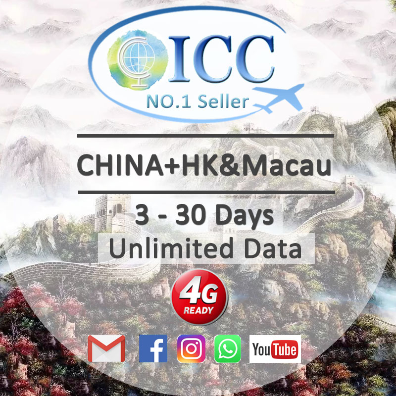 ICC China Mainland HK Macau China Mainland HK 3 30 Days Sim Card
